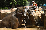 9月3日,两头大象在戏水。 近日,广西南宁持续高温,南宁市动物园工作人员设法让大象表演结束后在水中纳凉,戏水避暑。新华社记者刘广铭摄 点击浏览更多精彩图片
