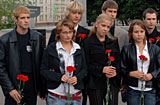 9月3日,在俄罗斯首都莫斯科,人们参加纪念别斯兰事件死难者的活动。 2004年9月1日,别斯兰第一学校发生恐怖分子劫持上千名人质的事件,至少造成333人死亡。 新华社记者魏忠杰摄 点击浏……