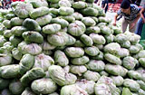 9月3日,市民在重庆云阳一家农贸市场选购新鲜上市的卷心菜。 近来,大量来自高山耐旱地区的晚熟蔬菜充实了重庆云阳的菜市。自重庆遭遇罕见高温干旱以来,受旱灾影响较小的库区高山一带的农民,及时调整种植……